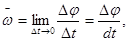1. За весьма малый промежуток времени t угол поворота (или угловое перемещение) изменится на величину . Отношение  к называется средней угловой скоростью и обозначается  т. е.