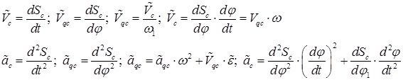 Кинематическими передаточными функциями механизма называется производные от функции положения по обобщенной координате. Первая производная называется первой передаточной функцией или аналогом скорости (обозначаются