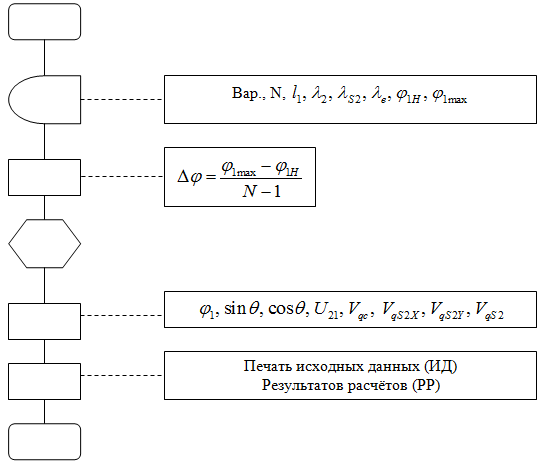 Блок-схема программы определения кинематических передаточных функций скорости кривошипно-ползунного механизма (AR210):