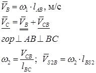 Кинематические характеристики кривошипно-ползунного (и любого другого) механизма могут быть определены и с помощью графоаналитического метода или как его чаще называют метода планов наложений скоростей и ускорений.