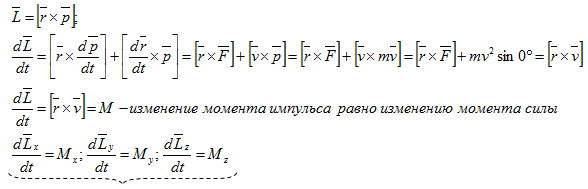 Момент импульса относительно точки – это векторное произведение импульса на вектор до точки его (импульса) приложения.