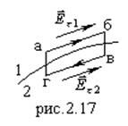 Тогда: ; при этом , что согласуется с рис.2.14. Чтобы найти тангенциальные составляющие, используем теорему о циркуляции вектора  (1.27). Выбрав контур в виде прямоугольника абвг, получим условие для .