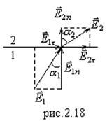 На границе двух диэлектриков (рис.2.14) в поле  возникают связанные заряды. Имеются две границы – 1-2 и 2-1 и две нормали на границе  и . Они и показывают, какую границу мы рассматриваем.