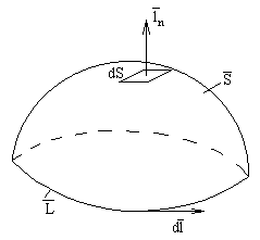 , выделим некоторый замкнутый контур V и поверхность S, которая опирается на этот контур. Введем положительную единичную нормаль к поверхности S.