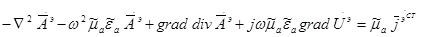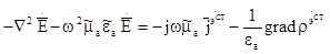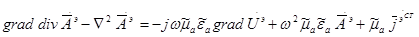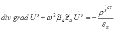 В результате проведенных преобразований мы получили неоднородное дифференциальное уравнение, которое в математической физике называется неоднородным уравнением Гельмгольца. Это уравнение описывает волновые процессы. Векторное дифференциальное уравнение (5) можно записать в виде трех уравнений проекций:
