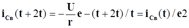 Первое слагаемое iПр есть частное решение уравнения (5.6) и выражает принужденное (установившееся) значение равное U/r. Второе слагаемое iСв=Aept представляет собой решение однородного уравнения, т.е. уравнения (5.5) при равенстве нулю правой части. Здесь p и A - соответственно корень характеристического уравнения и постоянная интегрирования. Для рассматриваемой цепи p= -r/L, а постоянная А определяется по начальному току в индуктивности i(0+). Так как ток в индуктивности до момента коммутации отсутствовал (нулевые начальные условия), то при t=0 для полного решения (5.6) имеет место