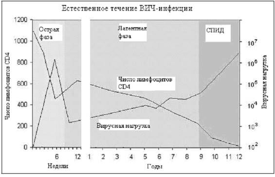 Рис. 2 – Естественное течение ВИЧ –инфекции.
