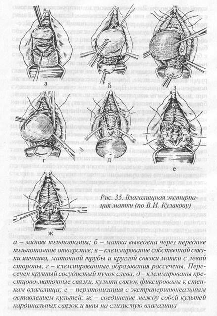Рис, 35. Влагалищная экстирпа-ция матки (по В. И. Кулакову)