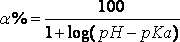 где рКa – показатель ионизации вещества (– lgK), численно равный значению рН, при котором в растворе в равновесной концентрации присутствуют ионизированная и неионизированная (молекулярная) формы (т.е. вещество ионизировано на 50 %). Эта величина постоянная для данного вещества.