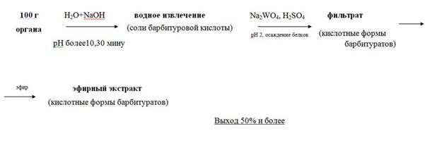 Рассмотрены методы изолирования данных веществ при проведении общего (ненаправленного) анализа (изолирование подкисленным этанолом (метод Стаса – Отто); изолирование водой, подкисленной щавелевой кислотой (метод Васильевой); изолирование нейтральным ацетоном (метод Карташова В.А.); твердофазная экстракция)), а также частные методы изолирования веществ кислотного характера (Метод Е. Грусц-Харди – изолирование смесью спирта и хлороформа; изолирование барбитуратов подщелоченной водой (метод П. Валова), метод изолирования алкалоидов водой, подкисленной серной кислотой (по В.Ф. Крамаренко), исследование биологических жидкостей (жидкость – жидкостная экстракция).