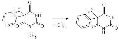 Экстракционная очистка основана на способности барбитуратов к имидо-имидольной таутомерии и на различной растворимости имидной и имидольной форм в воде и органических растворителях. Используя реэкстракцию барбитурата раствором гидроксида натрия из органической фазы, тем самым освобождаются от сопутствующих веществ, нерастворимых в воде (натриевые соли хорошо растворимы воде и извлекаются ею). Последующее выделение барбитурата из водной фазы проводят после подкисления водного раствора (рН=2) экстрагированием органическим растворителем. При этом барбитурат в молекулярной форме извлекается органическим растворителем, а в водной фазе остаются балластные вещества, не растворимые в органическом растворителе.