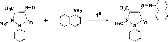 В пробирку вносят 2 – 5 капель хлороформной вытяжки, которую выпаривают досуха на водяной бане. К сухому остатку прибавляют 1 –2 капли воды, 1 каплю ледяной уксусной кислоты и каплю 5% раствора натрия нитрита. Смесь оставляют на 5 мин при периодическом взбалтывании. Затем добавляют небольшое количество мочевины. После прекращения выделения пузырьков газа прибавляют 3 – 4 кристаллика a–нафтиламина и нагревают пробирку на водяной бане 1 – 2 мин. В зависимости от количества антипирина появляется тёмно– или светло–фиолетовая окраска.