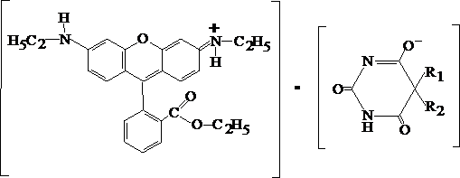 В делительную воронку вносят 0,1 мл раствора исследуемого вещества, прибавляют 0,2 мл 0,1% раствора родамина 6 Ж и 1 мл четыреххлористого углерода. Смесь взбалтывают в течение 1 мин. При наличии солей барбитуратов слой четыреххлористого углерода приобретает светло–оранжевую или оранжево–красную окраску. При взаимодействии образуются окрашенные ионные ассоциаты, которые экстрагируются четыреххлористым углеродом.
