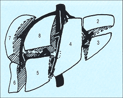 6. Сегментарное строение печени при ультразвуковом исследовании.