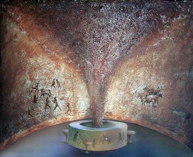«Троглодит». Интерьер воссоздает экзотическую атмосферу первобытной пещеры со стенами и столбами из натурального камня. Центрическое пространство с «мировым столбом» посредине ассоциируется с храмовой архитектурой примитивных народов и Древнего Рима. Автор: Е. Земцова