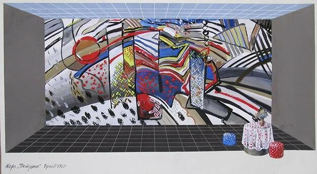 «Квадрат». Кафе для художников, разрабатывающих наследие авангарда ХХ века. Ломка классической традиции, n-мерность пространства, четкость цветовой системы. Автор: В. Мамотенко
