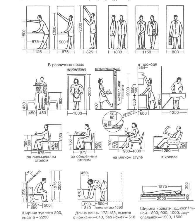 Рис. 14 Антропометрические требования к габаритам и размещению мебели
