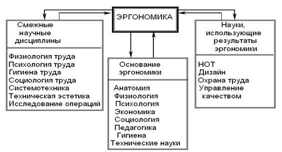 Рис.1. Взаимосвязь эргономики с другими дисциплинами