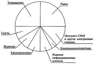 Рынок периодических изданий имеет сложную многослойную структуру, сформировавшуюся в нескольких срезах. Первый из них определяется спецификой различных СМИ. В соответствии с этим рынок разделяется на несколько секторов. Один из них – рынок периодической печати (прессы). Вторым сектором является радиорынок. Быстрее всех развивался телевизионный рынок.