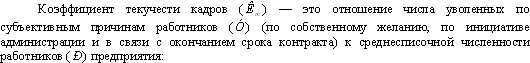 Часто в экономических расчетах для характеристики движения кадров используется показатель уровень текучести кадров.