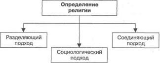 Социологический подход. Его представители делают акцент на социальных отношениях, связывающих системы верований и человеческие сообщества, на социальных функциях, выполняемых религиями в тех или иных обществах, на месте, роли и социальном статусе церкви в социуме, ее отношениях с другими социальными институтами, в первую очередь с государством. Современный американский социолог Г. Ленски определил религию как «систему верований о сущности сил, которые управляют в конечном счете судьбой человека, и связанных с ними ритуалов, исполняемых членами определенной группы». Как видим, у Ленски религия понимается как один из факторов воздействия на человека наряду с другими социальными факторами.