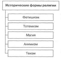 Социологи и антропологи до сих пор не имеют единого мнения об исторических сроках возникновения и существования определенных религиозных форм. Доказанной можно считать тенденцию развития форм религии от политеизма к монотеизму и от антропоморфных образов бога (богов) к абстрактному представлению о нем. По крайней мере все современные мировые и крупнейшие региональные и национальные религии монотеистичны.