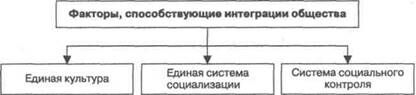 Но наряду с дифференциацией, которая ведет к появлению новых социальных связей, развитию горизонтальных и вертикальных струк­тур общества и вместе с тем к ослаблению его единства и сплоченно­сти (солидарности), происходит и обратный процесс — интеграция (восстановление целого, объединение частей).