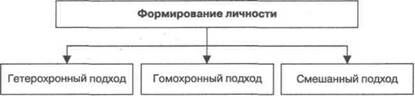 • гомохронный подход. Все индивиды формируются в строго ограниченное время, в каждом возрасте человек приобретает только определенные качества;