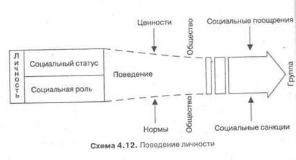 Социальные роли, все разнообразие социального поведения личности определяются социальным статусом и господствующими в обществе или в данной группе ценностями и нормами.