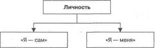Структура сформировавшийся личности, по Дж. Миду, состоит из двух компонентов: «Я — сам» и «Я — меня». «Я — сам» — это объект самосознания, самопонимания. «Я — меня» — рефлексия на оценки других и общество в целом (схема 4.4).