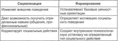 Если процесс формирования идет особенно интенсивно в детстве и юности, то процесс социализации интенсифицируется тем сильнее, чем активнее индивид вступает в систему социальных отношений. Детские игры, воспитание и обучение в школе и вузе, овладение специальностью и служба в армии — все это и есть внешние проявления процесса социализации.
