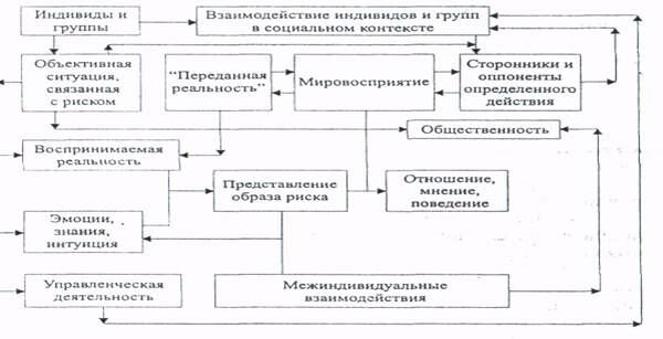 На основе такого восприятия каждая личность строит свойственные только ей образцы риска, которые, в свою очередь, ведут к формированию отношения данного индивидуума к риску, определенных мнений и поведенческих реакций. Тем самым восприятие риска и оценка его возможных последствий, главным образом неблагоприятных, становятся важной детерминантой самоотнесения личности с собой как субъектом определенного социального действия в экстремальной ситуации.