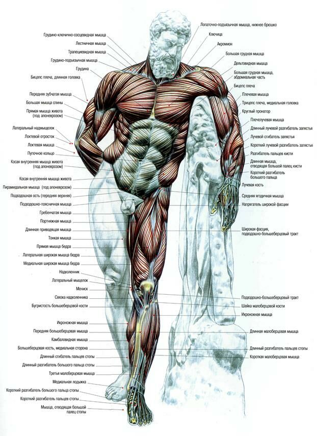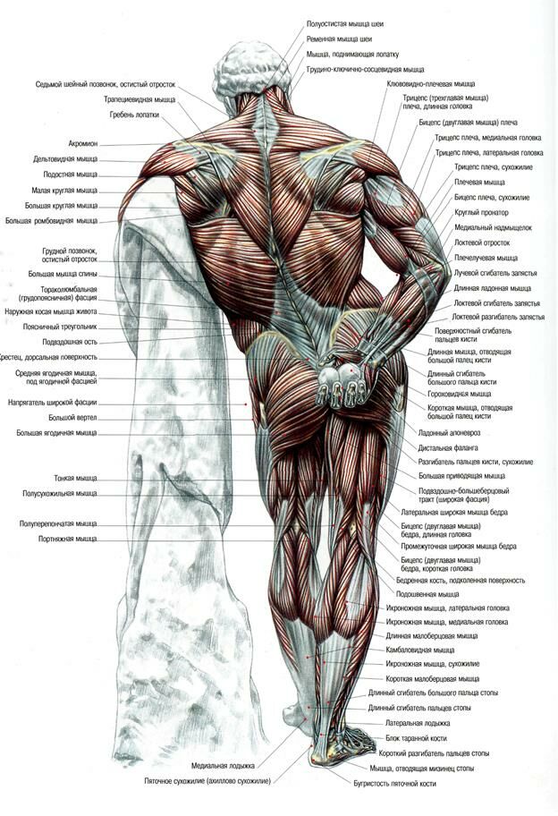 Общий обзор скелетных мышц человека. Мышцы туловища включают мышцы грудной клетки, спины и живота. Мышцы грудной клетки участвуют в движениях верхних конечностей, а также обеспечивают произвольные и непроизвольные дыхательные движения. Дыхательные мышцы грудной клетки называются наружными и внутренними межреберными мышцами. К дыхательным мышцам относится также и диафрагма. Мышцы спины состоят из поверхностных и глубоких мышц. Поверхностные обеспечивают некоторые движения верхних конечностей, головы и шеи. Глубокие («выпрямители туловища») прикрепляются к остистым отросткам позвонков и тянутся вдоль позвоночника.