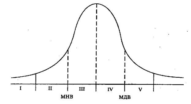 МНВ – минимально необходимая величина, МДВ – максимально допустимая величина, I патология, II гипокинезия, III гигиеническая норма, V патология