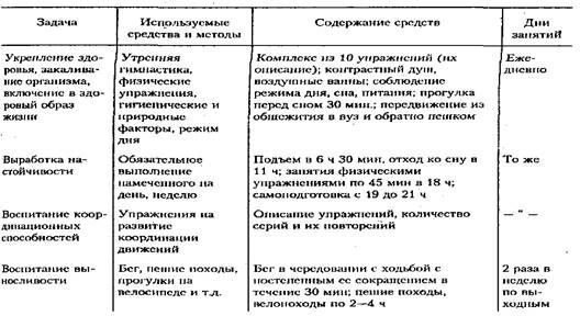Общая программа должна учитывать условия жизни, особенности самой личности, ее потребности. На основе программы формируется личный план физического самовоспитания.