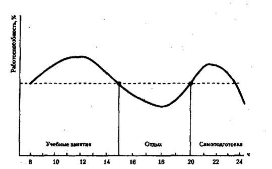 Высокая работоспособность обеспечивается только в том случае, если жизненный ритм правильно согласуется со свойственными организму естественными биологическими ритмами его психофизиологических функций. Чем точнее совпадает начало учебно-трудовой деятельности с подъемом жизненно важных функций организма, тем продуктивнее будет