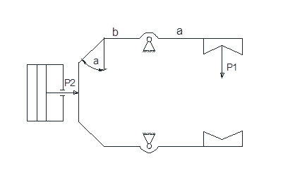 P1 – усилие, необходимое для надежного удержания заготовки, в процессе манипулирования. Cиловое передаточное отношение механизма: