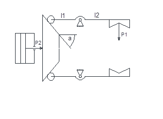 , задавшись недостающими параметрами захватного устройства. Определить силовое передаточное отношение