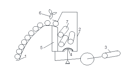 Заготовки 7 в хаотическом порядке помещаются в бункер 2. При помощи двигателя 3 и ворошителя 4 , заготовки приводятся в движение с целью недопущения образования сводов (т.е. заклинивание деталей), при этом предполагается, что по случайному закону часть заготовок попадает в область ориентации и при помощи ориентирующего устройства 5 (ножевого типа) будет доставлена к окну выдачи. Правильно ориентированная заготовка должна пройти сквозь окно и переместиться в лоток 1. Неправильно ориентированная заготовка или избыток заготовок, при помощи отсекателя 6 будет сброшена в бункер.
