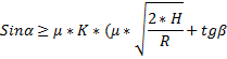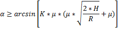 W – линейное ускорение заготовки, при движении по плоскости наклона под
