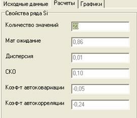 В ряде с 23 значениями отклонение от среднего составляет 0,1. Коэффициент автокорреляции -0,24, что свидетельствует об отсутствии зависимости между различными отсчетами содержания кремния в чугуне Si(i). Коэффициент автоковариации равен -0,05, что говорит об отсутствии линейной взаимосвязи между двумя отсчетами содержания кремния в чугуне Si(i). Дисперсия равная 0,01 характеризует низкую степень разброса значений содержания кремния в чугуне Si(i) относительно среднего значения. Математическое ожидание равное 0,86 означает, что среднее значение содержания кремния в чугуне Si(i) равно 0,86.