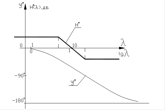 Псевдочастотные ЛАФЧХ системы, устойчивой в разомкнутом и замкнутом состояниях, показаны на рис.28, где