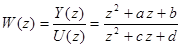 Рассмотрим три способа перехода от Z-передаточной функции дискретной системы к уравнениям (57), (58): способы прямого программирования, последовательного программирования и параллельного программирования на примере звена второго порядка с одним входом и одним выходом и передаточной функцией