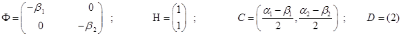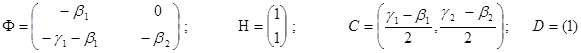 При таком выборе переменных состояния матрицы Ф, Н, С, D соответственно имеют вид