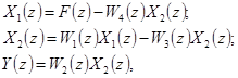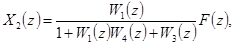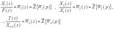 2. Связать введенные вспомогательные координаты, входную и выходную переменные системы между собой с помощью Z-передаточных функций.
