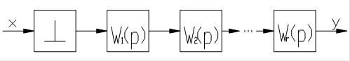 3. Последовательное соединение непрерывных звеньев с одним импульсным элементом на входе. Структурная схема данной системы представлена на рис.13.