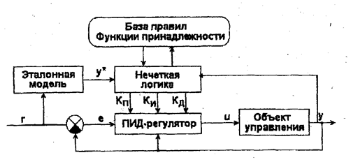 Рис. 3.9. Структурная схема нечеткой адаптивной САУ с ПИД-регулятором
