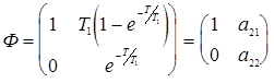 Подставляя в (18.4) t=T (интервал квантования), получим переходную матрицу состояния дискретной системы: