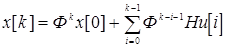 х[k]=Фkx[0]+ Фk-1Hu[0]+...+ФHu[k-2]+Hu[k-1]