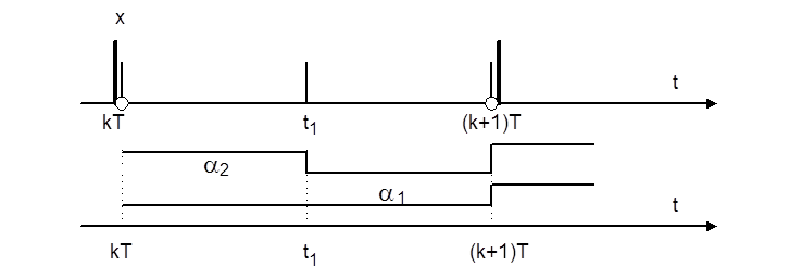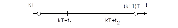 Например, рассмотрим подинтервал [kT, kT +t1]. При t=kT имеем переход:
